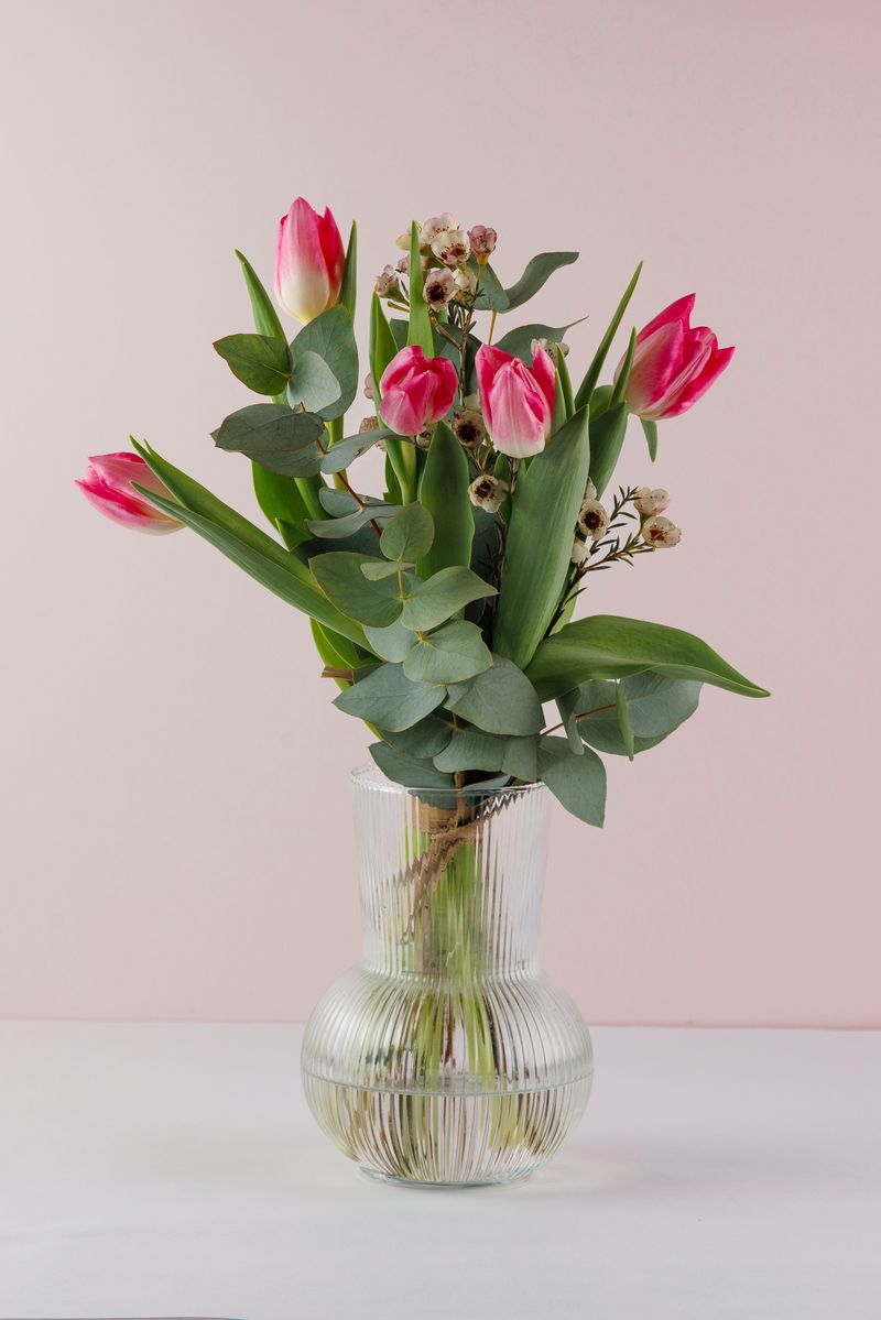 Kevadine lillekimp tulpide ja rohelisega.
