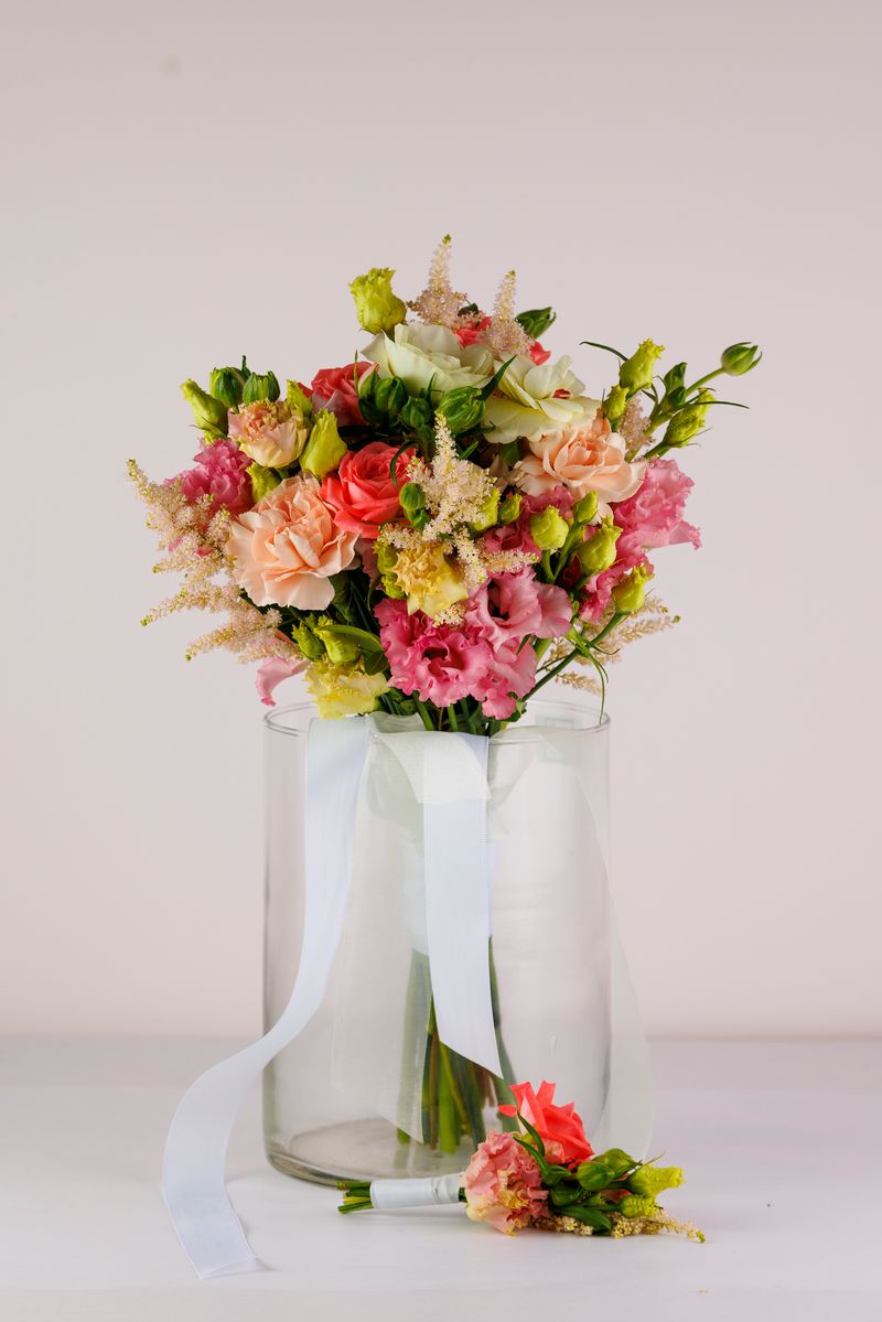 Julge ja rõõmsameelne valik pruudile, kes soovib oma päeva lisada värve ja energiat. Selles kimbus saavad kokku särtsakad nelgid, õrnad preeriakellad ja õhuline astilbe, luues kauni ning mängulise terviku. Komplekti kuulub ka sobiv rinnanõel peigmehele.